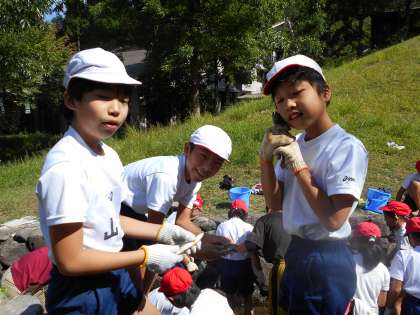 魚つかみの様子