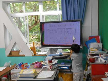 自分の考えをノートにかいたあとは,自分の考えを発表します。