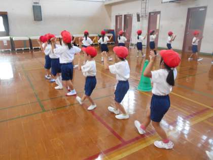 とても蒸し暑い日でした。玉入れの前のダンスは,途中で場所移動のあるチームと,その場所で踊り続けるチームがあり,初めはクラスごとの円ですが途中で赤組と白組の円になります。練習を積み重ねて,うまく移動できるようになってきました。