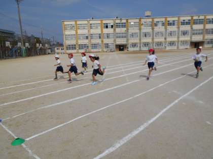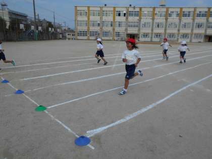 50メートル走の練習では,直線のコースをまっすぐ全力で走りました。