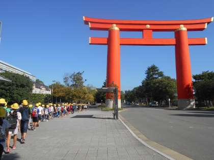 平安神宮の鳥居の横を通って,目的地の「ロームシアター」に到着です。楽しみにしていた『ガンバの大冒険』を鑑賞しに来ました。