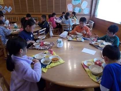 給食はランチルームで楽しくいただきました。
