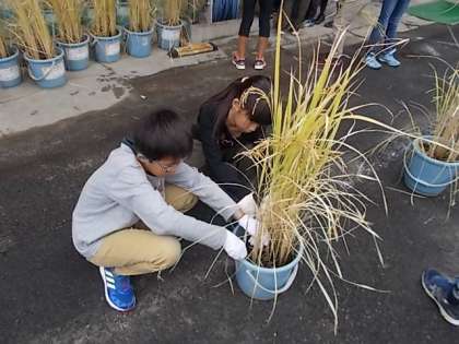 大切に育ててきたバケツ稲。