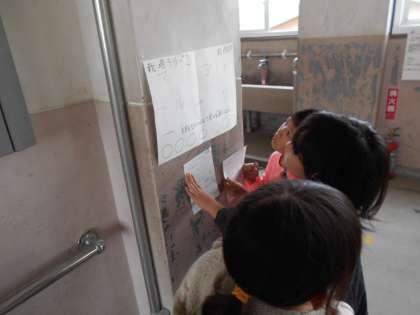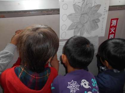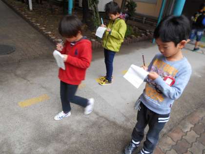 栽培委員会が企画してくれた「栽培ラリー」を楽しんでいます。「いっしょに行こう!」と声をかけ合って,友だちと一緒にクイズを解いていました。