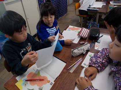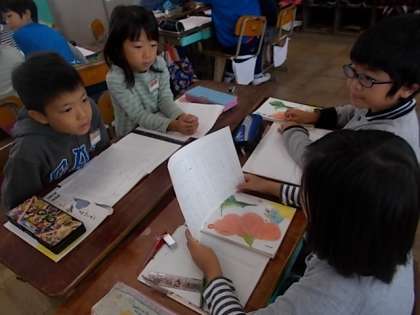 今日は,「ちいちゃんのかげおくり」を読んだ感想をグループで発表しあいました。友達の考えと自分の考えを比べながら聞きました。