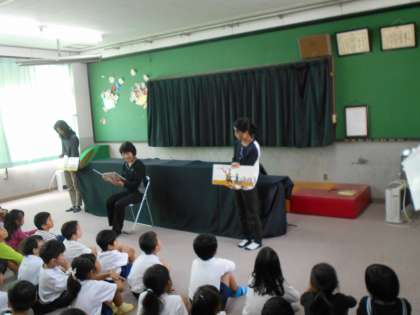 読み聞かせボランティアの方々が,楽しいお話を読んでくださいました。お話の世界に入り込んで,聞き入っていました。