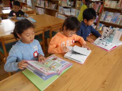 10月24日 1年 図書室で