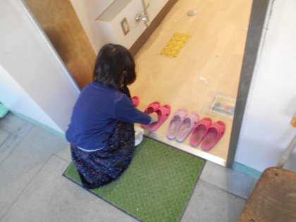 トイレの後,スリッパをきれいに揃えていました。きれいに揃えてあると,とても気持ちがいいですね。