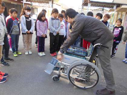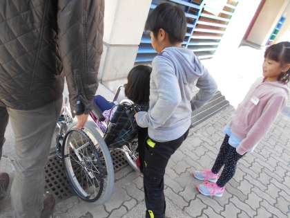 クラスごとに車いす体験をしました。
