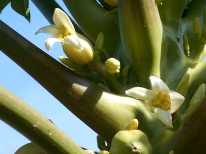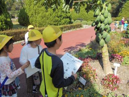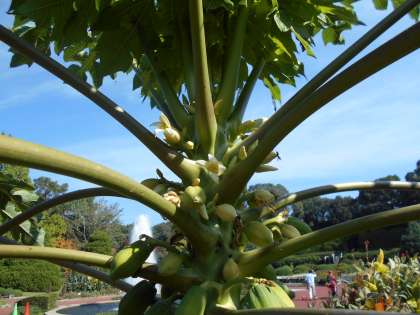 ばら園の近くにパパイヤの木がありました。「こんな花なんや!」初めてパパイヤの花を見てびっくりしていました。