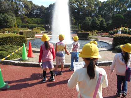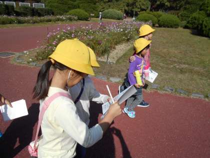 2年生のお兄さんお姉さんがうまくリードしてくれて,仲良く「ウォークラリー」をしています。