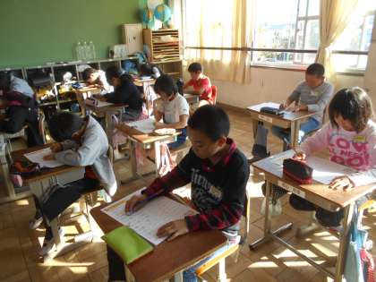 後期初めての漢字50問テストです。どのクラスも真剣に取り組んでいました。