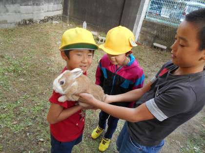 中間休みと昼休みに,飼育委員さんが「ふれあい会」をしてくれました。うさぎのモカとふれあうことができて,大喜びしていました。クラスによってふれあう日が決まっているので,これからのクラスはみんな楽しみに待っています。飼育委員のお兄さんお姉さん,素敵な会をしてくれて,ありがとう。