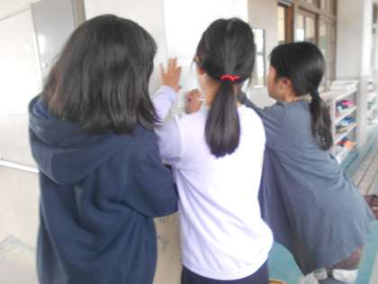 栽培委員会の人たちが考えてくれた栽培ラリーに参加している6年生です。