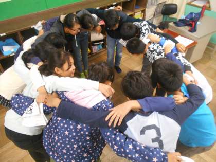 大文字駅伝の予選会で走るメンバーの発表がありました。円陣を組んで,みんなで士気を高めています。
