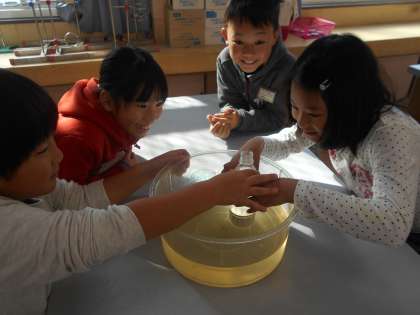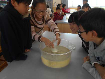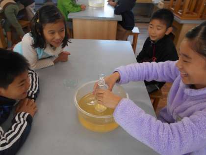 ペットボトルの口に石けん水をつけて湯に入れると・・・不思議なことが起こりました!なぜそうなったのか,これから実験で明らかにしていきます。
