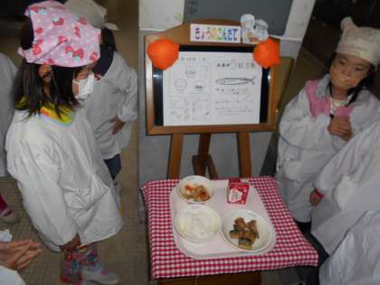 今日の給食の「さんまのかば焼き風」は砂糖・みりん・醤油で味付けされて,とっても美味しく大人気でした。ごちそうさまでした。
