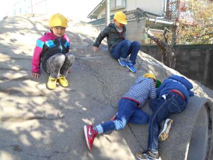 つき山で遊んだり,どんぐりを拾ったり,寒くても外に出て遊んでいます。