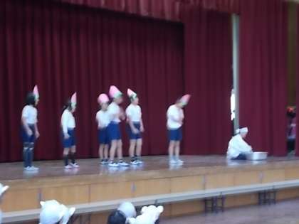 今日は,3年生の95人の子どもたちが心を一つにして,「ももたろう 〜川岡バージョン〜 」の劇をしました。歌,ダンス,リコーダーと3年生で学習したことを織り込みながら,「協力することの大切さ」「一人ひとりが笑顔になれるように」をテーマに演じました。終わった後の子どもたちは,達成感でいっぱいでした!!みんな頑張りました!花丸!!