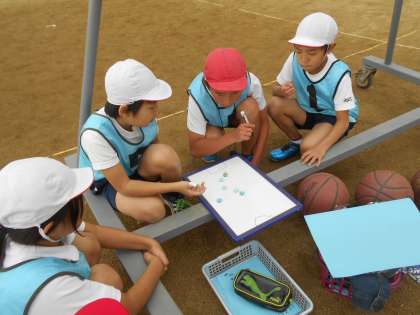 今日はバスケットの4時間目でした。対抗戦をしました。相手チームを意識しながら作戦を考えました。作戦の結果,2試合目には勝てたチームが多かったです。この調子で頑張ります。