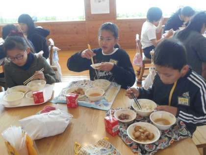 今日はランチルームで給食をしました。みんなでお話をしながら楽しく給食をいただきました。