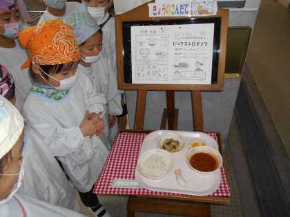 栄養教諭の中野先生がくださる「いただきます」のおたよりを読んで,「ビーフストロガノフ」が200年も前から作られているお料理だと知りました。よく味わっていただきました。ごちそうさまでした。