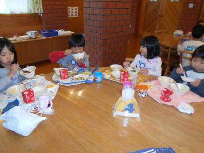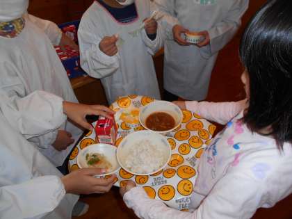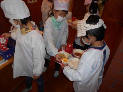 ランチルームで手際よく配ぜんして,美味しくいただきました。