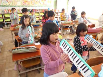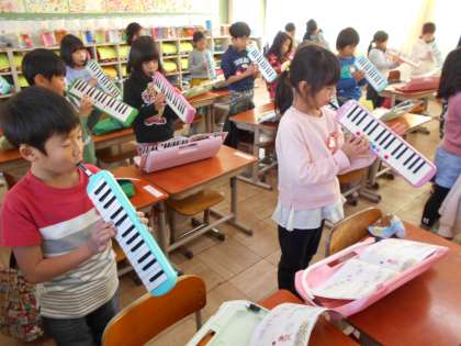 今まで,みんなで練習した曲を立奏してみました。いい音が出ました。