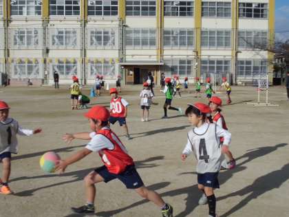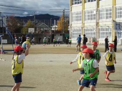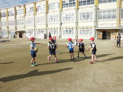 とてもいいお天気の中,元気にパスゲームの学習をしました。