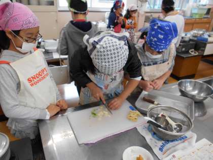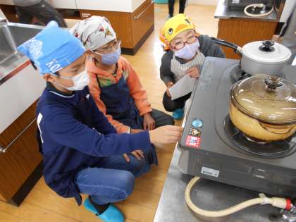班の友達と協力しながらご飯とみそ汁を作ることができました。時間をしっかりと計ったり,ご飯の様子を確認したりしながら上手に炊くことができました。ご飯とみそ汁のいい匂いが家庭科室中に広がっていました。