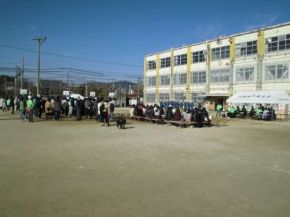 朝から,川岡学区の防災訓練が行われました。地震発生を想定し,各地域から学校に避難して来られました。今回は,避難所へのペット受け入れ訓練もありました。