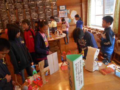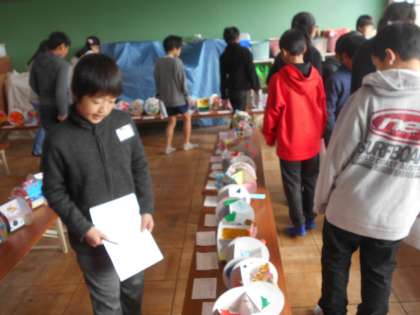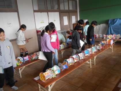 図工展の鑑賞をしました。色々な学年の作品を見て感じたことや思ったこと,工夫しているところなどを見つけました。友達のよいところを次からの図工の時間に生かしていきたいと思います。