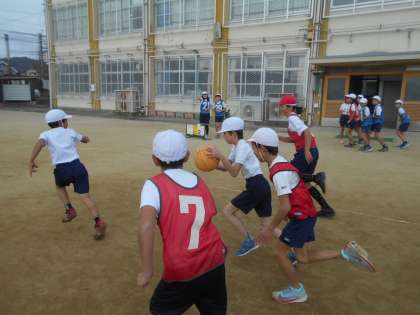今日はバスケットボールで1組,2組,3組が争いました。体育で学習したことを生かして精一杯頑張りました。勝敗にこだわりながらもチームで高め合っていこうとする姿が見られ,とても楽しい1時間となりました。