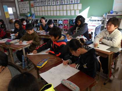 1月25日 5年 図工 「立ち上がれ!マイライン」
