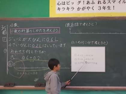 今日は,小数の計算のしかたを,小数の構成や数直線上の位置で考えました。