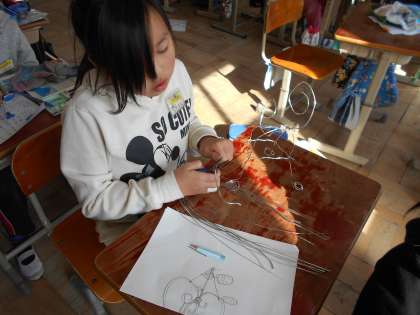 針金を曲げたり組んだりして,