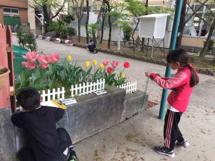 学校内の春を見つけに行きました。
