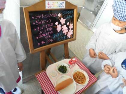 今日は1年生の入学をお祝いする献立です。喜んでいただきました。ごちそうさまでした。