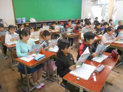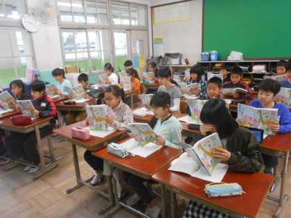 よい姿勢で詩を朗読しました。そして詩に込められた作者の思いを考えました。
