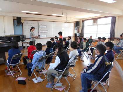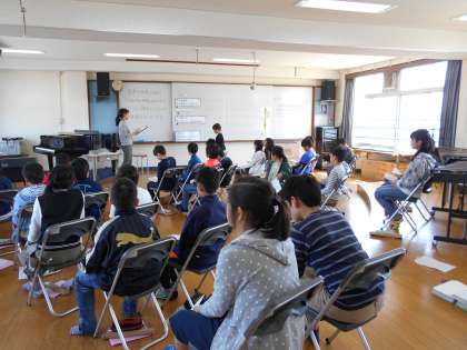 音楽の授業が始まりました。スクールサポーターの西村先生のピアノ演奏を聴いてみんな感動していました。これからもよろしくお願いします。