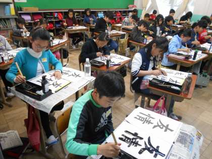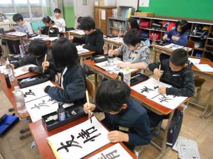 6年生になって初めての書写の時間でした。今日書いた文字は「友情」です。小学校最後の1年間でたくさん友情が深まるようにと思いを込めて書きました。
