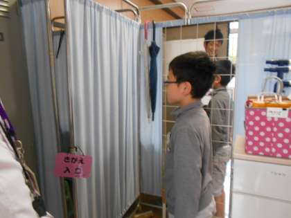 視力検査と合わせて,自分の姿勢を保健室の秘密道具でチェックしました。