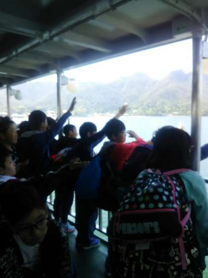 フェリーに乗って広島に帰ります。すれ違ったフェリーに「おーい」と手をふりました。