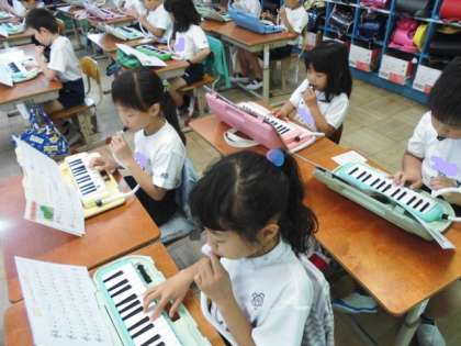 タンギングに気をつけて鍵盤ハーモニカを演奏しました。リズムにのって楽しんでいました。