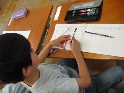 今日の算数は6の分け方を考えました。鉛筆と色鉛筆を使い分けながら,6がいくつといくつに分けられるかを考えていきます。