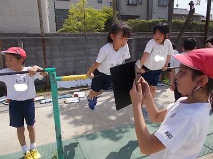 上がる技,回る技,下りる技の中からできそうな技を選んで挑戦しています。