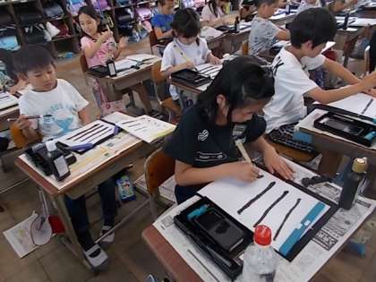 今日は,道具の名前や姿勢,筆づかいなどについて学習しました。