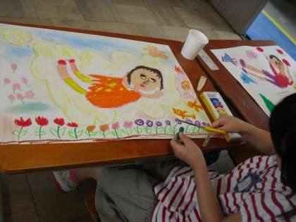5月17日 1年 図工「とんでみたいな いきたいな」