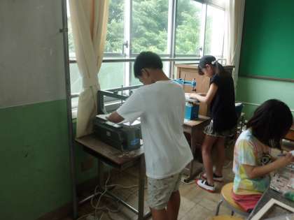 電動糸のこを使って,パズルを作っています。曲線を取り入れたかたちを器用に切り抜いています。切ったピースは紙やすりでみがいて,着色します。出来上がりが楽しみです。