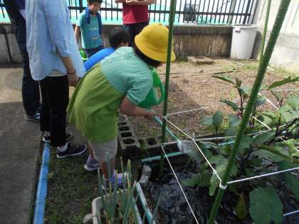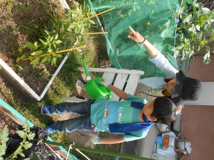 野菜の収穫を楽しみに水やりがんばります。